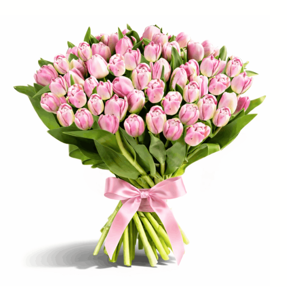 The bouquet is composed of 101 pink tulips.